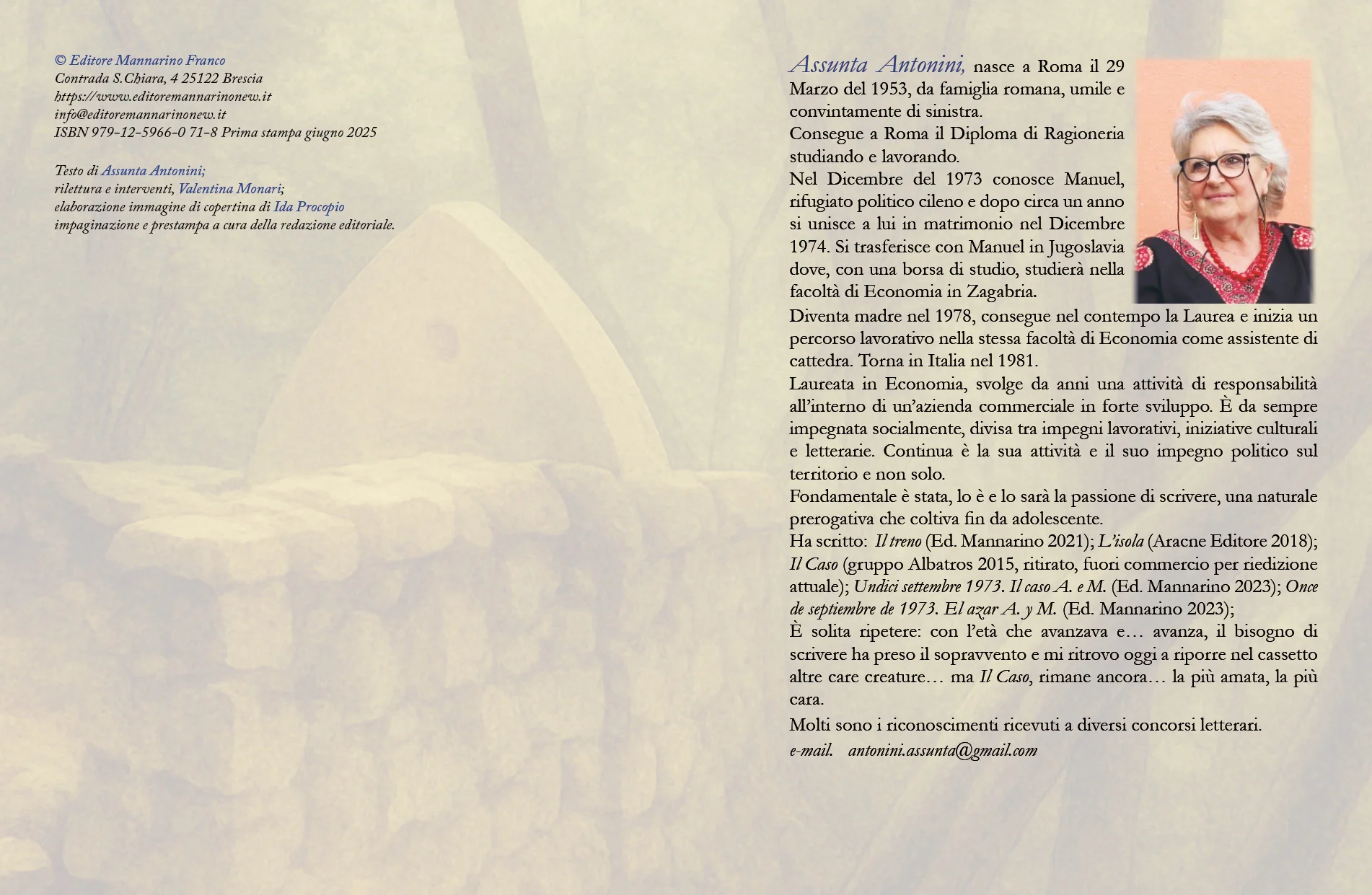 IIl racconto è la storia di due giovani vite, Assunta e Manuel avvenuta in un periodo storico carico di ideali dove le speranze per un futuro migliore acquistano grinta, forza e passione. Tutto ha inizio con il drammatico Golpe di Stato in Cile, l'undici settembre 1973. La Narrazione scorre sul filo dell'imponderabile e della casualità degli eventi, evidenzia le contraddizioni degli anni '70 di un contesto sociale che segnerà nel bene e nel male l'esistenza dei protagonisti. Questo è l'attimo in cui la casualità inizia a tessere la trama del destino dei due inconsci protagonisti. Manuel, giovanissimo membro della Guardia Personale di Allende, dopo una lunga clandestinità per le strade di Santiago, riesce a saltare il muro dell'Ambasciata Italiana, salvando così la sua vita. Dopo una attesa di più di due mesi, arriverà per lui il salvacondotto come rifugiato politico che lo accompagnerà dal momento della sua uscita dal Chile fino a Roma, la città di Assunta. Le coraggiose scelte di vita che si susseguiranno diverranno spartiacque fondamentali per entrambi. Il fermento degli anni '70 farà da cornice alla loro personale crescita e alla crescente capacità di affrontare le vicissitudini di quell'epoca. Assunta e Manuel si innamoreranno molto presto e, dopo un primo breve tempo passato insieme a Roma, partiranno per la Jugoslavia, un paese socialista che tra i primi accolse gli esuli cileni, offrendogli la possibilità di studiare e di ricostruirsi una vita. Nel periodo della loro vita jugoslava faranno scelte fondamentali. Una su tutte, la più forte: accettare di diventare genitori. Dopo gli studi torneranno a Roma un rientro segnato da diverse difficoltà: dalle precarie condizioni economiche e dalle condizioni di salute di Manuel. Assunta, fedele alle proprie idee, continuerà a credere alla meravigliosa utopia dei propri ideali, cercando di resistere ai vari uragani che si affacceranno all'orizzonte. Manuel, forte temperamento, spezzato e trafitto da un avverso destino, continuerà a lottare per sopravvivere con l'aiuto dell'amore di Assunta. Al di là della netta posizione ideologica che traccia il perimetro dell'intera storia, il racconto è soprattutto una storia d'amore forte, passionale, conflittuale, spesso amara. Il racconto non ha nessun elemento di fantasia
